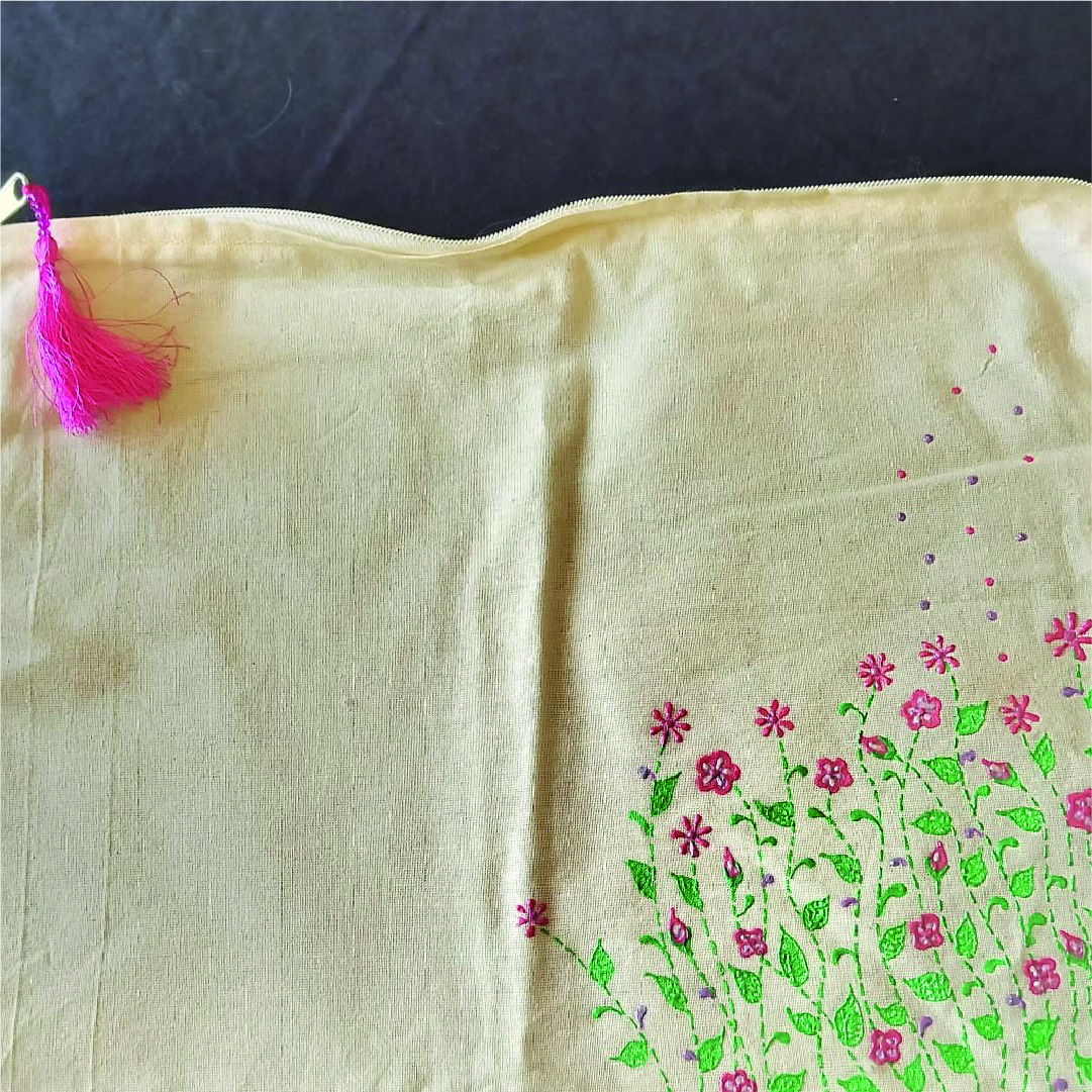 Carry elegance and eco-friendliness with this handcrafted jute laptop bag, featuring delicate floral embroidery. Lightweight yet durable, it's perfect for everyday office, college, or travel needs.