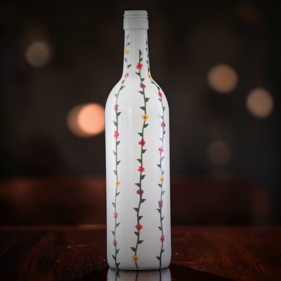 Bring subtle elegance and fresh charm to your space with Blooming Tide, a beautifully hand-painted decorative bottle inspired by nature’s gentle flow. Set on a clean white base, the design features delicate vertical vines adorned with tiny, colorful blossoms that seem to grow gracefully upward—creating a calm, refreshing visual appeal.