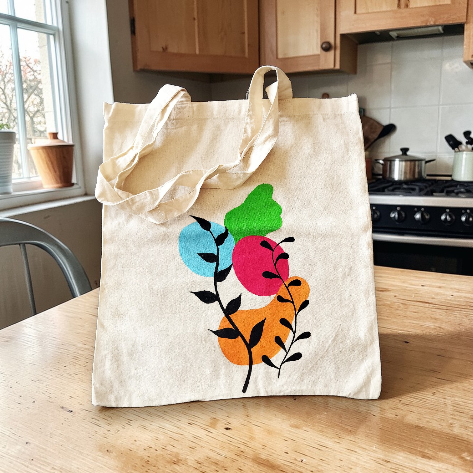 Each bag is uniquely hand-painted, giving it a charming handmade touch that stands out from regular shopping bags. It is reusable, lightweight, durable, and ideal for people who love eco-conscious fashion with an artistic look.