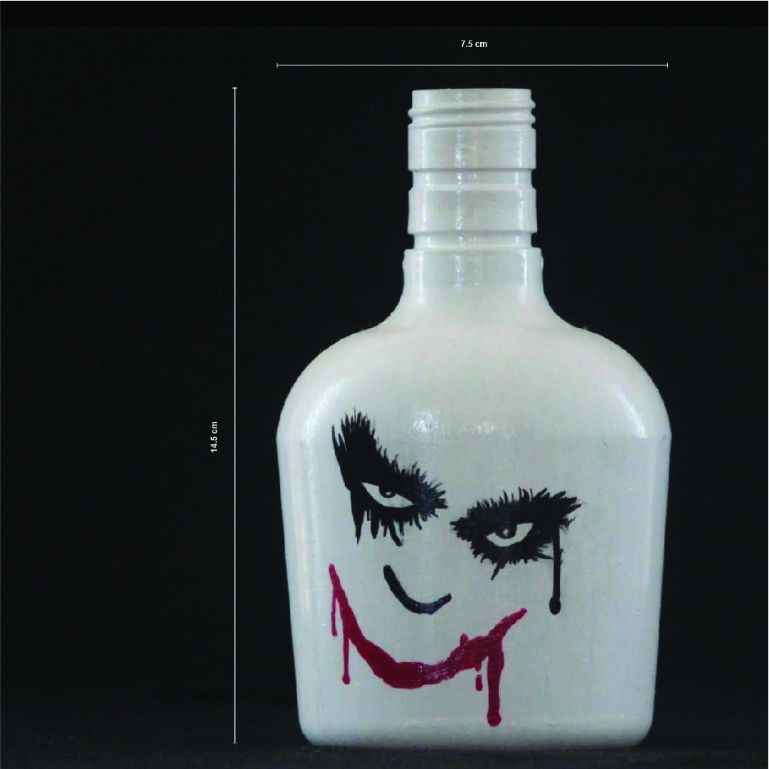 This 7.5 x 14.5 cm glass bottle features a bold and captivating painting of a devil, adding a touch of mystery and intrigue to any space. Perfect for those seeking unique, edgy decor for their home or office.
