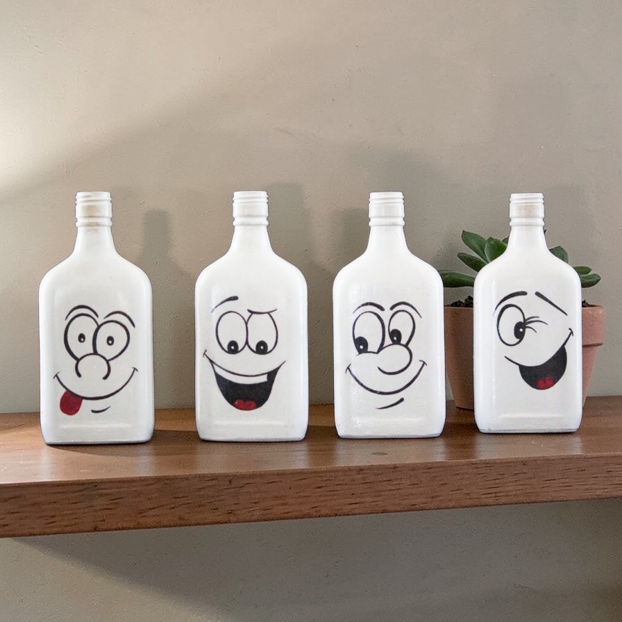 Add a splash of fun and personality to your space with The Mood Parade, a delightful set of hand-painted decorative bottles that celebrate expression and emotion. Each bottle features a unique cartoon-style face, capturing a range of playful moods—from cheeky and joyful to curious and mischievous—bringing life and character to any setting.