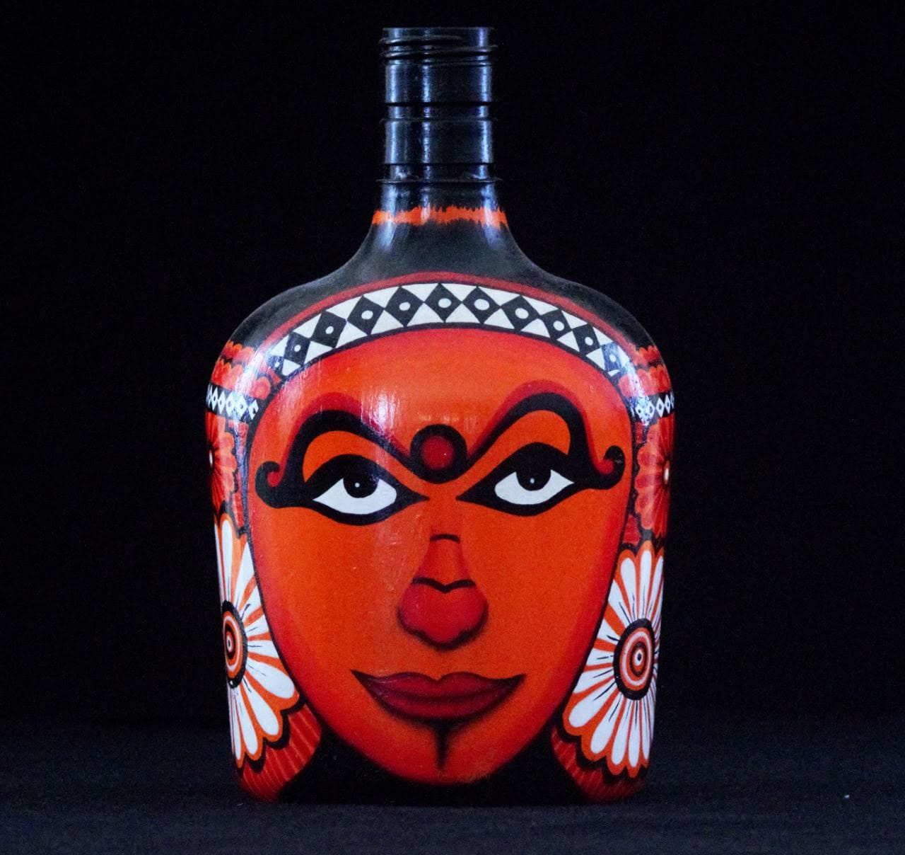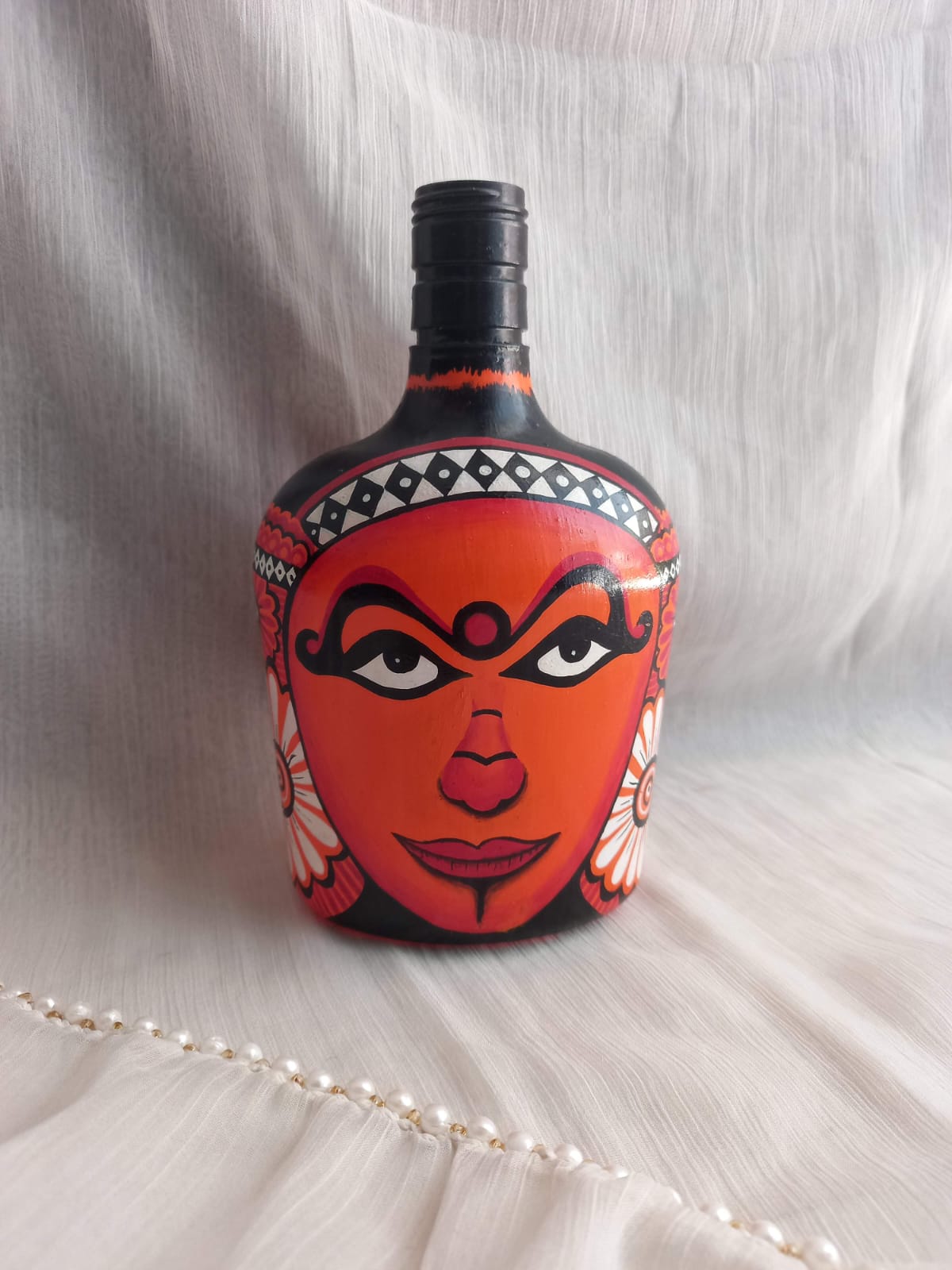 Beautifully hand-painted bottle featuring a bold tribal face design, inspired by traditional folk art. Perfect for adding a cultural and artistic touch to your home décor.
