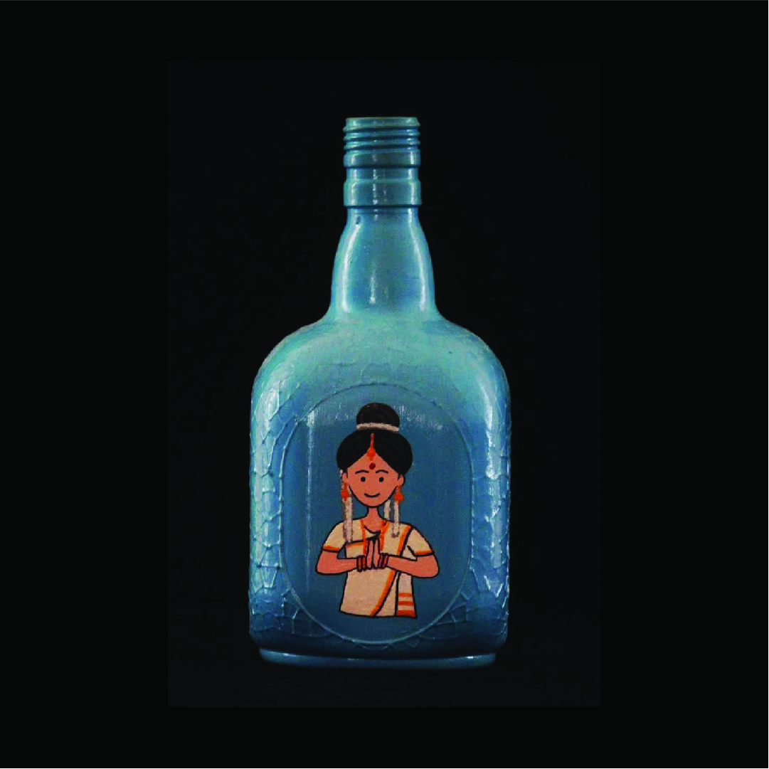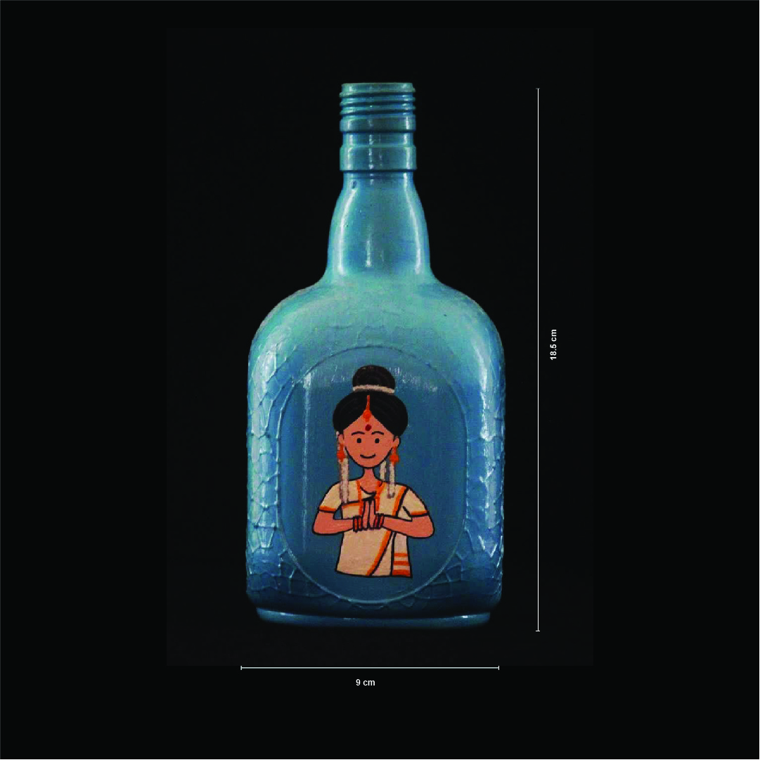 This glass bottle beautifully showcases the traditional "Namaskar" gesture, capturing the essence of Indian culture with vibrant colors and intricate designs. A perfect blend of spirituality and art for your home or office.